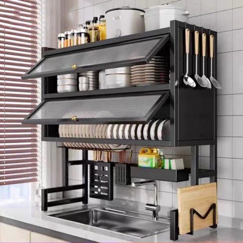 Dolap kapıları ve şeffaf toz geçirmez depolama dolabı ile çok fonksiyonlu ev sofra depolama rafı